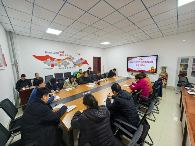 3月12日上午,学生工作处党支部在辰晖楼109会议室召开2025年度组织生活会,党支部全体党员参会,会议由党支部书记都超主持。